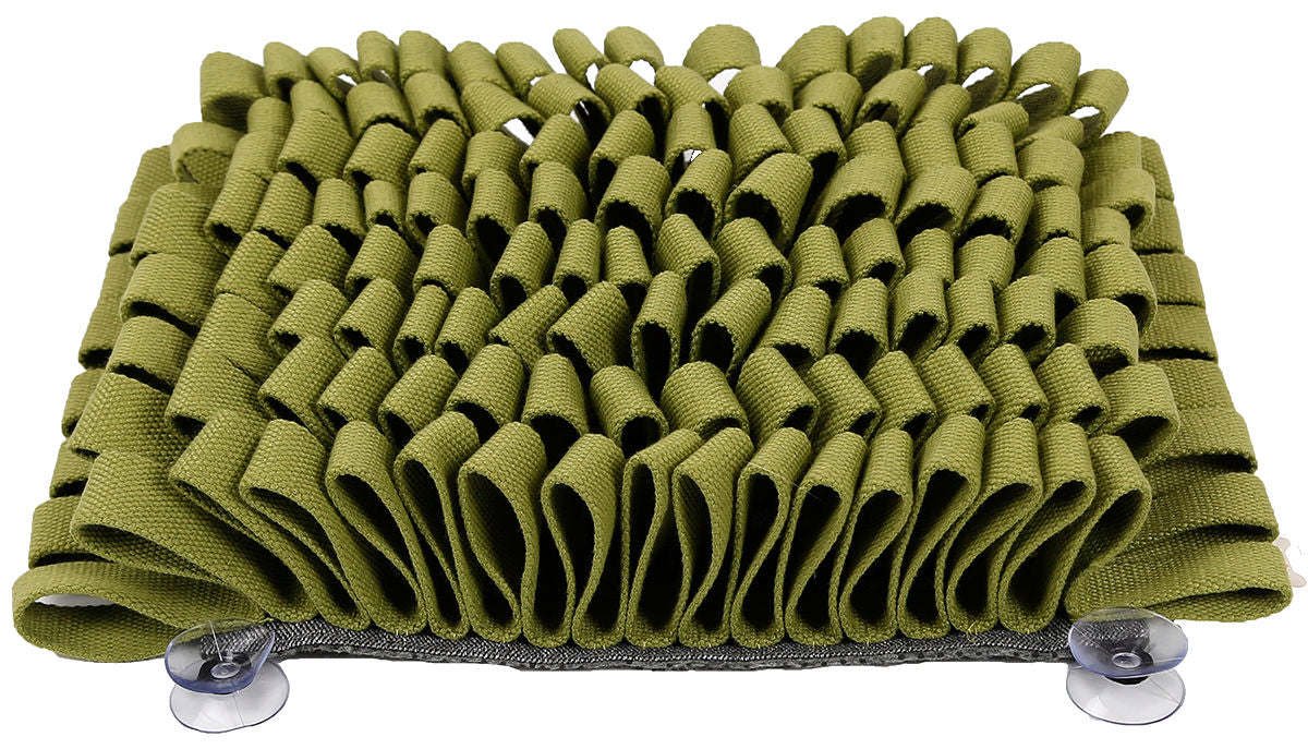1.The Sniifer-Grip Snuffle Mat is great for both Cognitive Development and Digestive Aid. Simply place treats or dry food inside and watch your pet go to work!