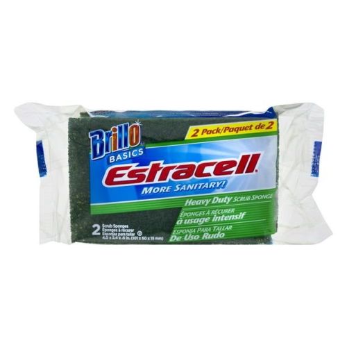 Brillo Basics Estracell Heavy Duty Scrub Sponge. The more sanitary, dual-sided Brillo Estracell Heavy Duty Scrub Sponge easily removes burnt-on foods. It’s made with unique fibers that dry faster. We made a different sponge for all your surfaces, so you can clean up without spreading bacteria around. This, plus the fact that bacteria won’t grow on our Estracell sponges, makes them more sanitary. That’s why Brillo is one of the most trusted names in household cleaning.