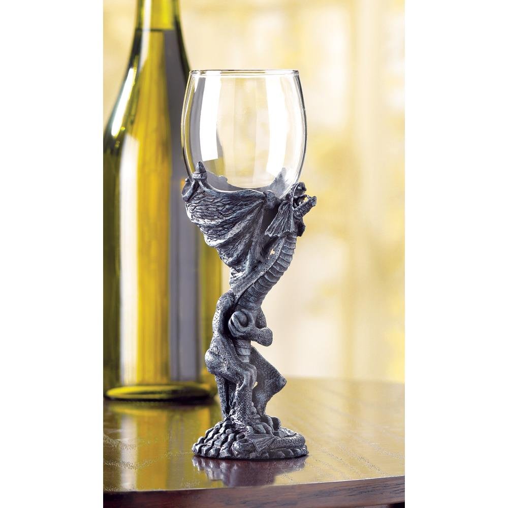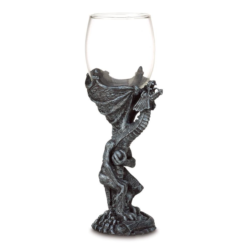 • An imposing roaring dragon forms a majestic base for a clear glass globe as this medieval-style goblet looks as impressive in your hand as it does at the banquet table! Decorative purposes only. Hand wash only.