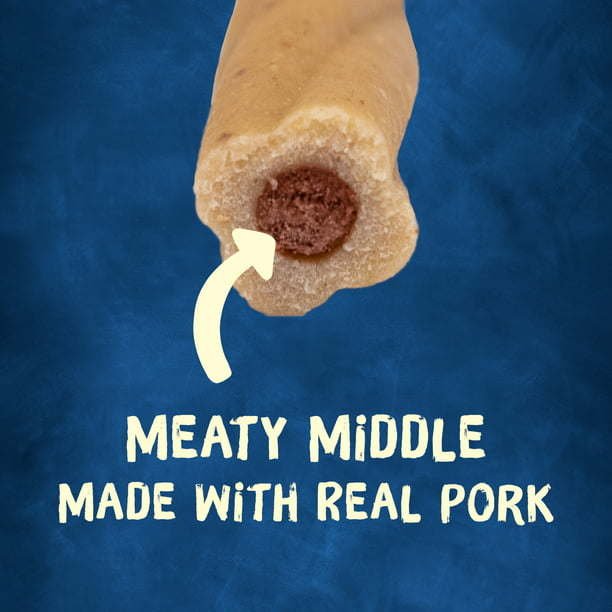 Purina Busy Bone Pork Long Lasting Chews for Dogs, Keep your tiniest of tiny dogs entertained with Purina Busy Bone tiny adult dog chew treats. Made with real meat in the center, these chewy bones let him know how much you care. Designed especially for a tiny dog's small mouth, each Purina Busy Bone tiny adult dog chew treat has a twisted shape to add to your dog's chewing pleasure. Watch his excitement as he gnaws to his heart's content, savoring the exterior as long as possible before reaching the bold, meaty reward in the center. Since we manufacture these treats in Purina-owned facilities without FDC colors, you can rest assured he's getting only the best.
