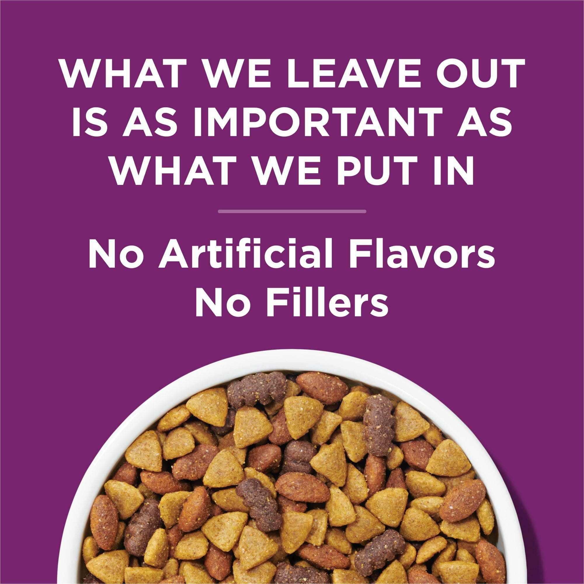 Crunchy Purina dog food dry kibble texture helps clean teeth